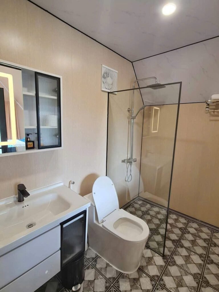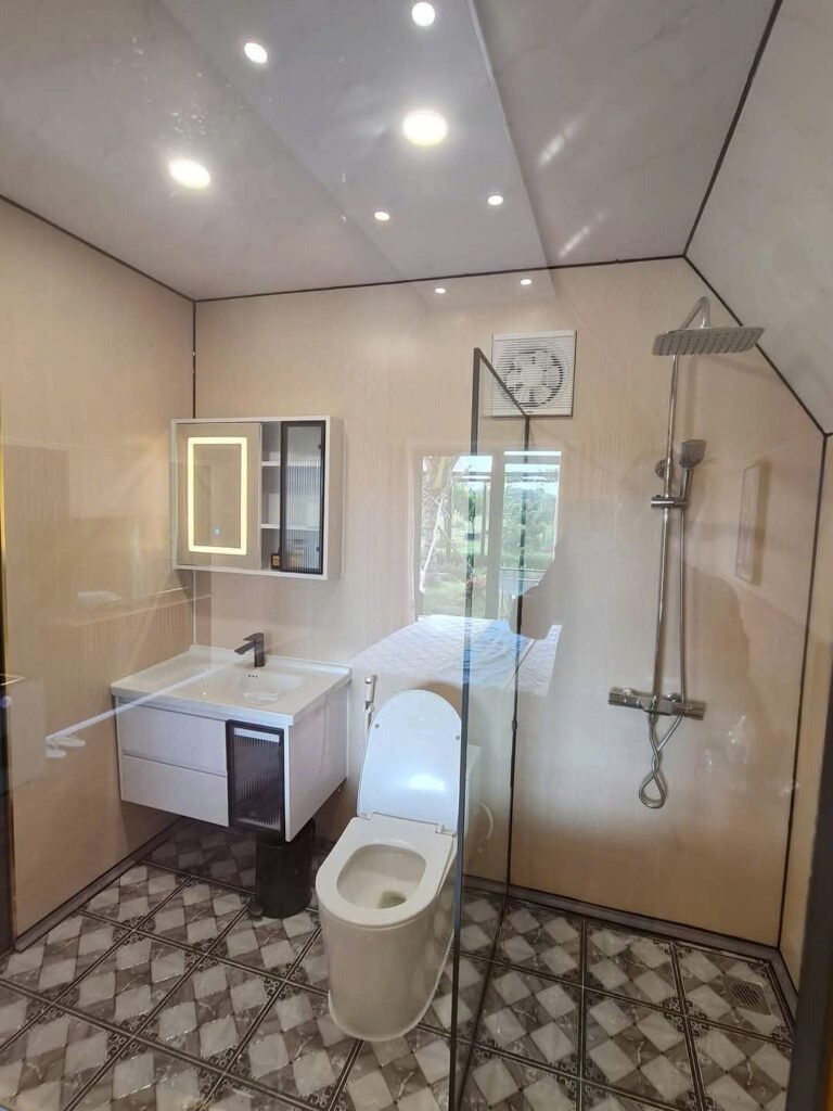 Nhà lắp ghép bungalow mái nhọn chữ A có toilet.
