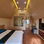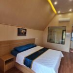 Cửa kính lớn hướng ra ban công, rèm che đầy đủ